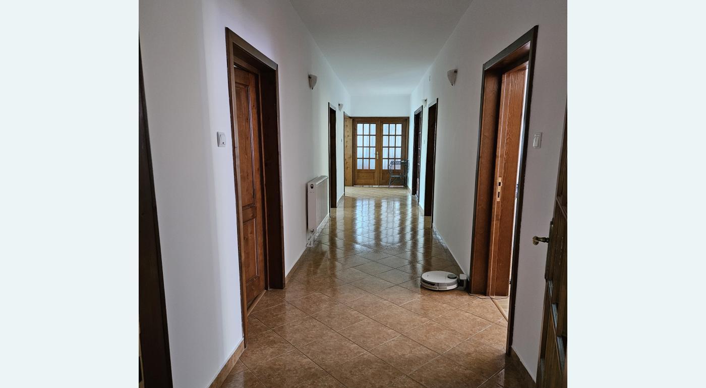 Casa noua in zona in plina dezvoltare 300 mp 100 mp pe nivel 6 camere 2 bucatarii 5 bai 2 bai de serviciu 1000 mp teren acces auto pomi padocuri pentru caini incalzire cu lemne si unitati de climatizare inverter fibra optica perspectiva gaz