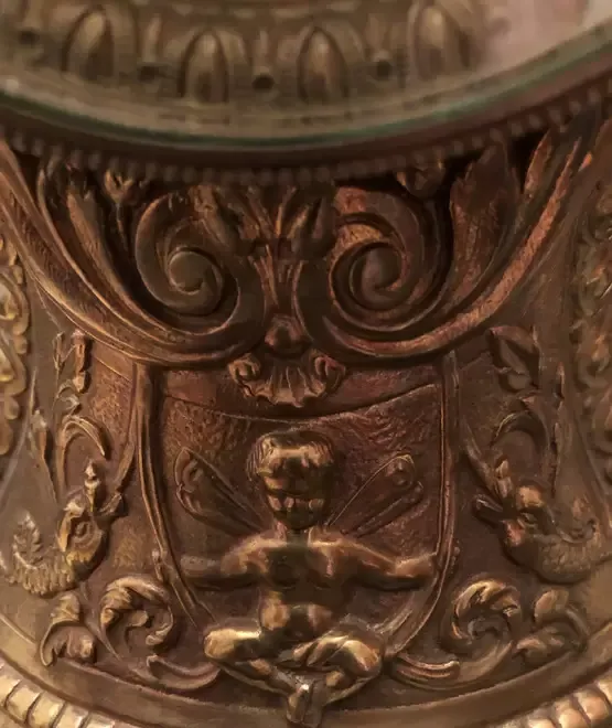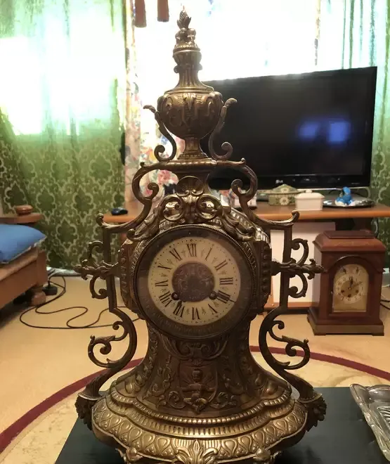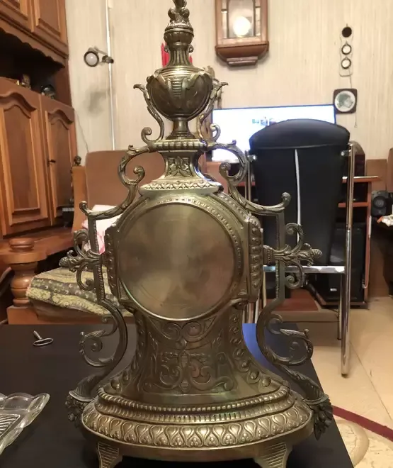 Aceasta este fabricata manufactural in Franta anul 1878 stantat pe mecanism Bate orele si jumatatile de ora pe un clopot din argint-bronz reglajul avans - retard se face cu o cheita rotind axul patrat din dreptul orei 12 Frumos ornamentata cu insemnele casei regale a Frantei Restaurata aspect si functionare de exceptie Ofer garantie de buna functionare