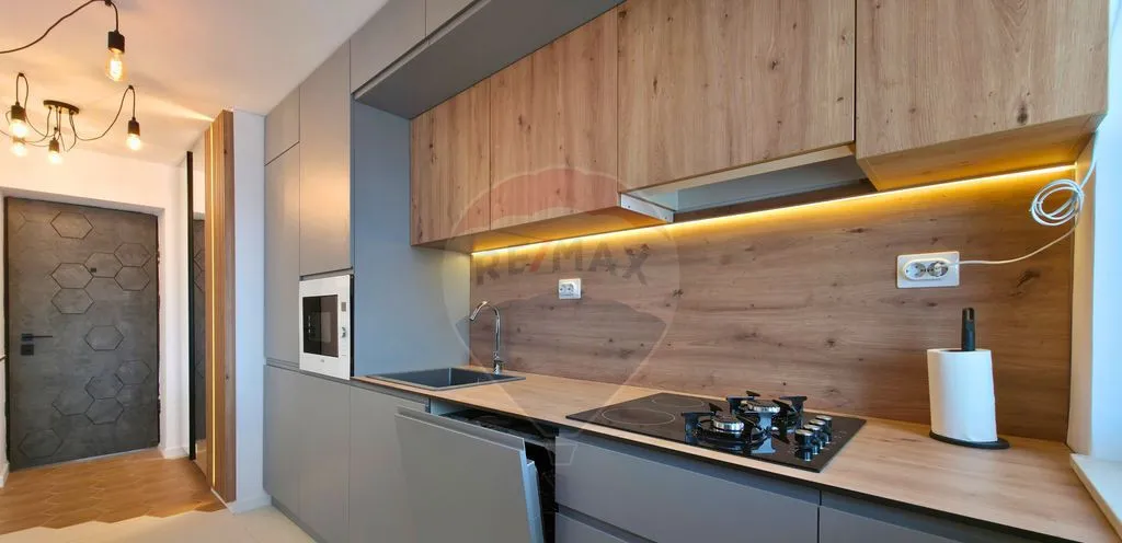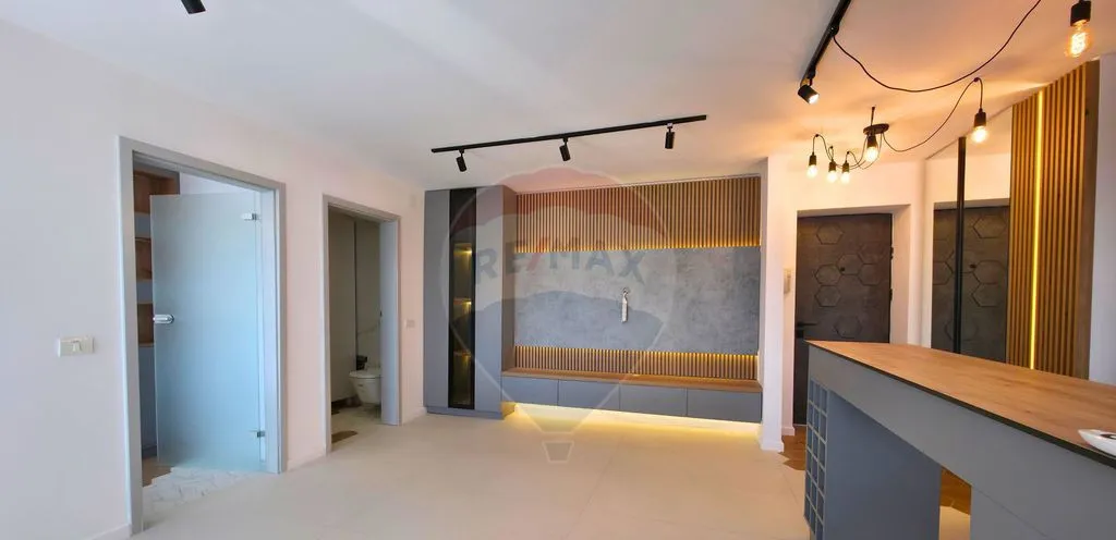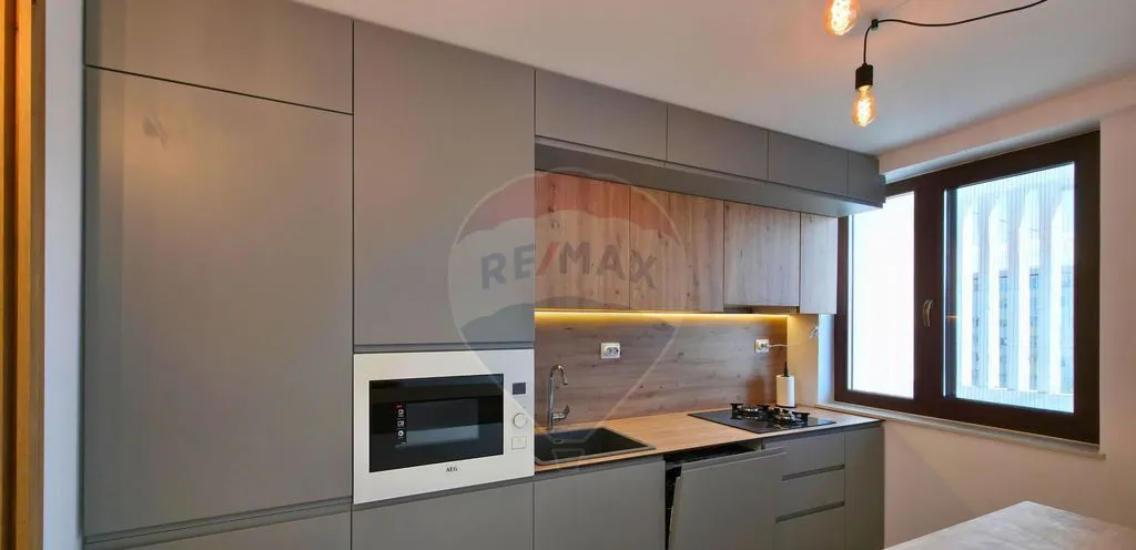 Apartamentul este complet renovat și mobilat cu mobilier și electrocasnice noi, realizat într-un design modern, cu atenție la detalii: