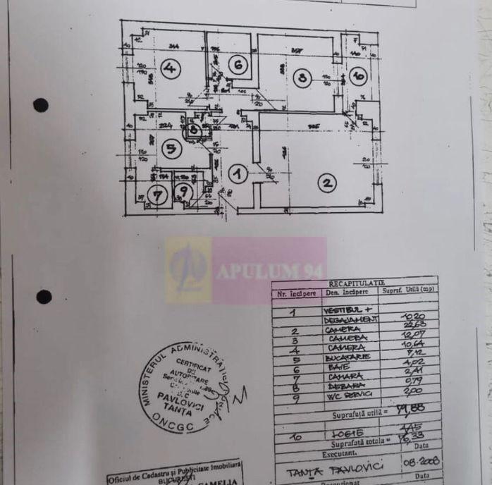 Va oferim spre vanzare un apartament 3 camere decomandat 77 mp Et 7/8 decomandat bloc 1995 cu vedere mixta si 2 grupuri sanitare 1 balcon logie Are Centrala proprie pe gaz Instalatie electrica refacuta Gewiss instalatie sanitara noua parchet natural stejar Apartamentul este liber si nemobilat Actele sunt la zi cu Cadastru si Intabulare facute