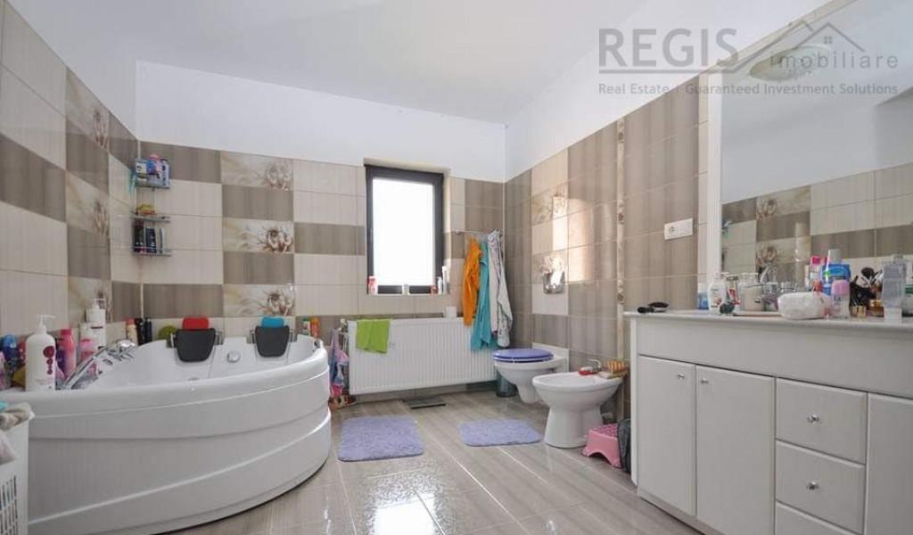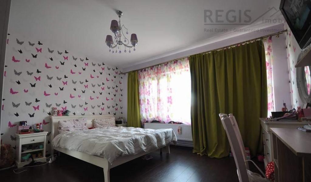 ID 4673 REGIS IMOBILIARE va propune spre vanzare in regim de exclusivitate o moderna casa de patru camere in zona noua Ghimbav Casa este construita cu materiale calitative caramida porotherm geamuri Salamander tripan izolata exterior si interior proprietatea este gata de a va oferi tot confortul necesar Imobilul este impartit in - parter unde avem bucataria baia de servici camara si un living room generos - etajul I unde se gasesc trei dormitoare doua bai moderne balcon dresssing - mansarda ce poate fi transformata in birou sau camera de locuit spatii de depozitare Curtea partial pavata este prevazuta cu un gratar spatiu de depozitare a uneltelor livada de pomi decorativi parcare In imediata apropiere a vilei gasim supermarket statie de autobuz cresa farmacie pozitionare ultracentrala Proprietatea se vinde co...