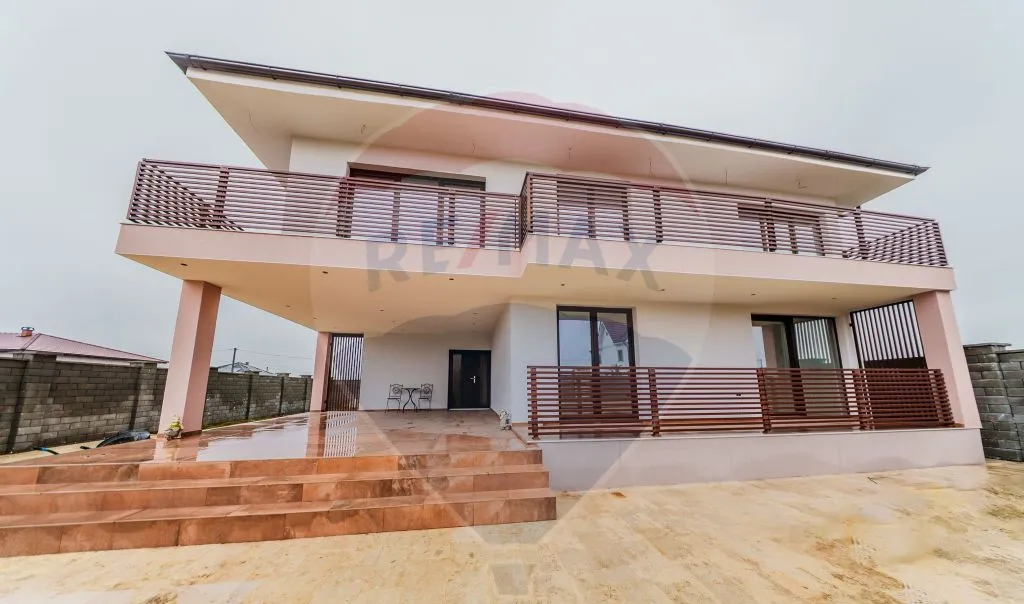 Terenul de 501 mp oferă intimitate în zona din spate (pregătită pentru gazon/peisagistică), iar partea frontală asigură un aspect sobru și elegant.