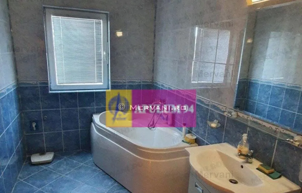 Parchet, gresie si faianta , origine Italia. Cada semiovala in baia de la etaj si cabina de dus la parter.