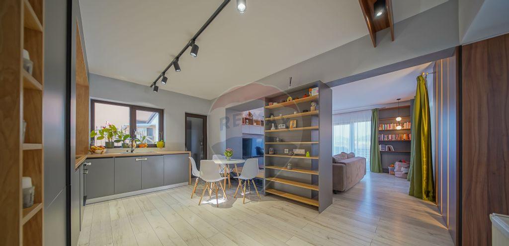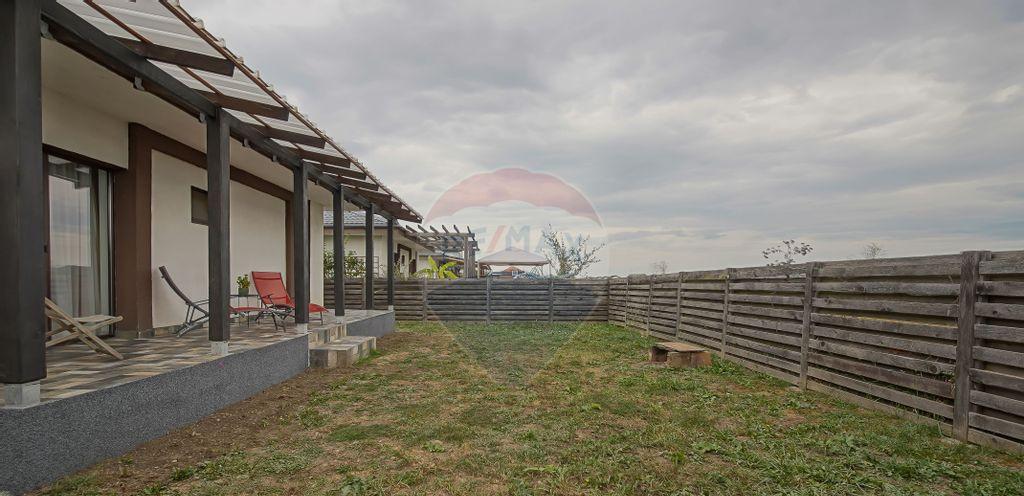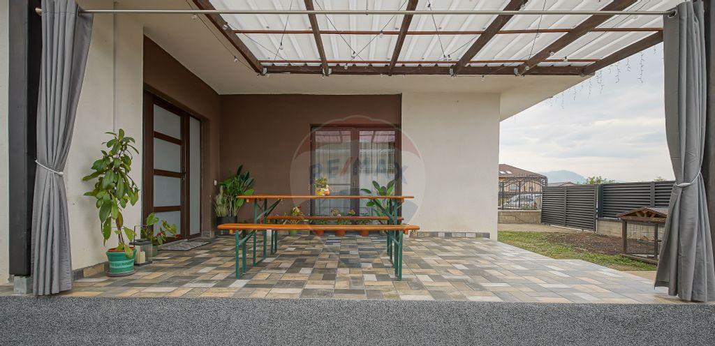 Buna sunt Aniela Panait din cadrul companiei RE/MAX Central si va invit sa descoperiti in reprezentare exclusiva si comision zero o casa moderna si cocheta situata in Cristian una dintre cele mai dinamice suburbii ale Brasovului Aflat in continua dezvoltare si modernizare Cristianul beneficiaza de infrastructura buna cu scoli gradinite si facilitati recreative cu acces facil in doar 15 minute spre Brasov dar si aproape de obiective turistice celebre precum Castelul Bran si Poiana Brasov ceea ce il face o alegere populara atat pentru cei ce doresc sa locuiasca aici cat si pentru cei ce doresc o casa de vacanta combinand viata de familie cu explorarea frumusetilor Transilvaniei Vila este construita pe parter are 102 mp utili si emana un aer contemporan si functional Fatada este eleganta cu linii curate si feronerie minimalista fiind evidentiata de mari ferestre din sticla care lasa lumina naturala sa inunde interiorul Acesta este generos cu un open space care imbina livingul diningul si bucataria intr-un singur flux armonios Pardoselile din lemn natural adauga caldura iar culorile neutre creeaza un ambient primitor Casa dispune de trei dormitoare fiecare cu propriul sau stil si atmosfera Dormitorul principal este dotat cu un dressing generos si o baie proprie in timp ce celelalte doua dormitoare sunt luminoase si primitoare perfecte pentru oaspeti sau pentru copii Fiecare dormitor beneficiaza de ferestre cu usi mari care ofera acces direct la terasa ideala pentru relaxare sau petreceri cu prietenii Curtea a fost insamantata cu gazon verde iar terasele atat cea din fata cat si cea din psate au fost amenajate pentru a te bucura de petrecerea timpului in aer liber oferind un spatiu modern si confortabil Panourile fotovoltaice au o capacitate mare de 10 kw care poate suporta lejer consumul casei precum si incarcarea a doua masini electrice Pompa de caldura asigura un climat placut in interior indiferent de sezon facand din aceasta vila un camin eficient si sustenabil iar aerul conditionat contribuie la confortul din zilele toride de vara Nu lipsit de importanta este si garajul in ansamblu vila fiind o combinatie perfecta intre modernitate eficienta energetica si posibilitati de personalizare Asadar daca sunteti in cautarea unei case moderne si cochete in care bunul gust si eficienta energetica sa se intalneasca nu ezitati sa ma contactati