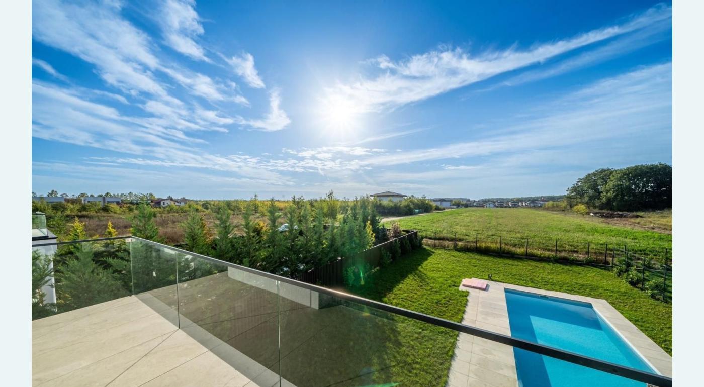 Dotari premium - Incalzire in pardoseala - Semineu pe gaz pentru serile placute - Centrala pe gaz si sistem de climatizare Hyundai - Tavan din sticla pentru lumina naturala din belsug - Piscina incalzita 10x4 m - Sistem de irigatie wireless/Bluetooth - Put forat 20 m adancime pentru independenta - Sistem de dedurizare a apei - 2 locuri de parcare