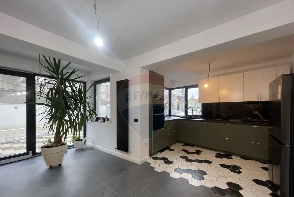 Interior minimalist, în tonuri calde, cu accent pe luminozitate și confort. Incalzire in pardoseala, plus de confort. Parcare in curte.