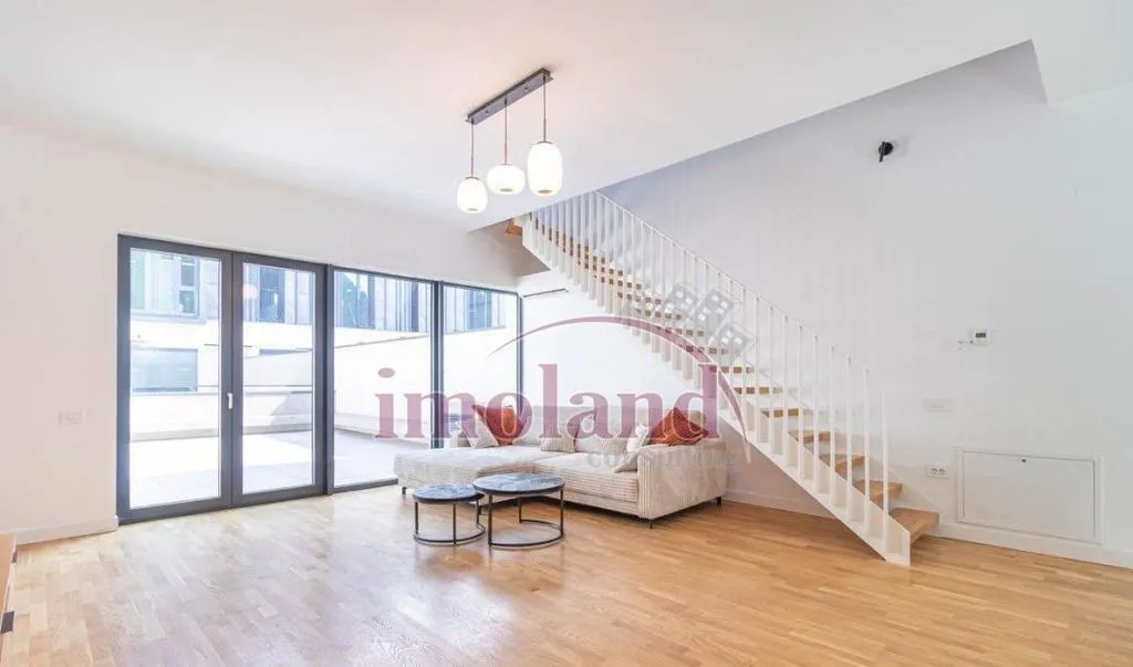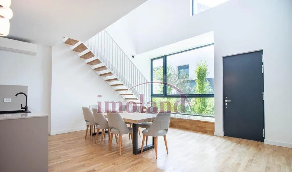Vila tip townhouse disponibila pentru inchiriere face parte din complexul rezidential Avalon Estate Vila este noua si se inchiriaza mobilata si utilata complet ultramodern Distributia spatiului - parterul - cu dublu acces dinspre aleea complexului si dinspre garajul cladirii - este un spatiu luminos si relaxant cu un volum impresionant dat de golul de 6 m din zona de dining tot aici se afla bucataria cu insula complet echipata de la Bosch un grup sanitar spalatorie si spatiu de depozitare - etajul 1 - are un living de 30 mp cu acces la o terasa de 46 mp - etajul 2 - dispune de 2 dormitoare o baie si o terasa de 6 mp - mansarda - este in intregime un dormitor matrimonial cu dressing si o baie echipata cu cada free standing si walk in shower Proprietatea dispune si de o gradina de 15 mp Se pot inchiria separat 2 locuri de parcare aferente proprietatii la pretul de 150 Euro/loc Aceasta casa de tip townhouse are urmatoarele finisaje si dotari - incalz...
