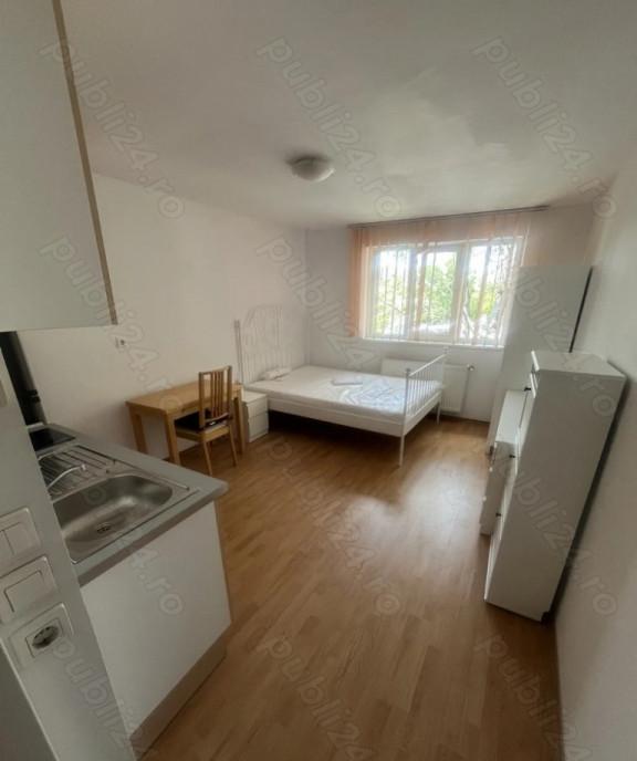 Garsoniera Lucretiu Patrascanu mobilata utilata masina de spalat frigider cuptor electric cuptor microunde plita incastrabila hota aer conditionat centrala termica gresie faianta 10 min metrou 1min statie STB MEGA IMAGE in fata scari Carffour si piata Minis la 5 min