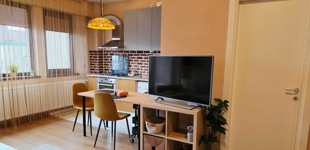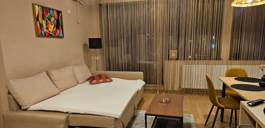 garsoniera foarte curata cocheta si foarte placut mobilata Este in imobil nou Dotata complet aer conditionat frigider cuptor electric plita hota masina spalat smart Tv Canapea cu topper ce se transforma intr-un pat confortabil Este situata practic in spatele blocurilor de la Piata Alba Iulia - 240 m / 3 minute de mers pe jos pana la terasele din rond Este pentru nefumatori nu sunt permise animale de companie de niciun fel Se insista pe curatenie Doar pentru chirias curat peste 28-30 de ani fara studenti o singura persoana poate locui confortabil acolo