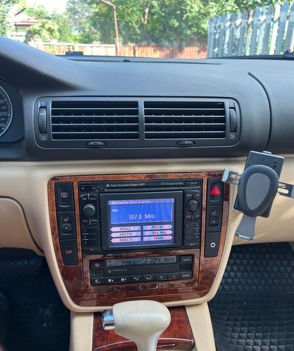 Vand passat b5 5 1 8 T automat Dotari -faruri bi-xenon cu spalatoare -pilot automat -senzor de ploaie -oglinzi electrice si incalzite -incalzire in scaune -clima -interior piele cu alcantara -magazie CD-uri -trapa -webasto cu telecomanda -senzori parcare spate -trimuri mahon -pachet crom exterior -computer de bord -intrare AUX Masina sta de doua luni a expirat asigurarea plus probleme la electromotor care a fost reconditionat complet Vine insotita de doua seturi de roti 225/45/R17 cu anvelope de vara in stare foarte buna si 225/35/ZR19 anvelopele trebuie inlocuite masurile sunt trecute in cartea masinii In luna ianuarie au fost inlocuite toate bratele si bucsele capete de bara suporti motor si cutie de viteze amortizoare si flanse spate placute de frana spate etrieri spate noi cablaj frana de mana burdufuri planetare si revizie motor si toate filtrele efectuata Geometrie realizata la autosoft Militari dupa ce s-au inlocuit bratele si capetele de bara Pe masina este prezenta si o instalatie GPL Defecte -zgarieturi si urme de prin parcari -usa spate stanga nu se deschide -torpedoul nu se deschide -un senzor abs am luat o groapa si de atunci se aprinde uneori -display-ul ceasurilor de bord isi pierde din afisaj cand este cald