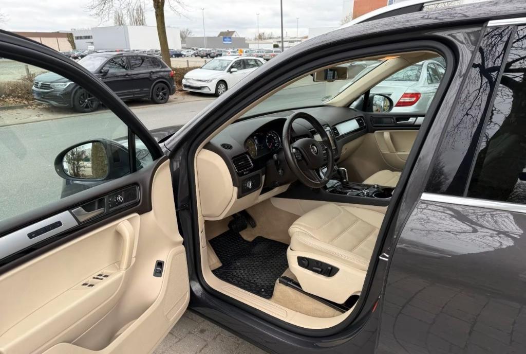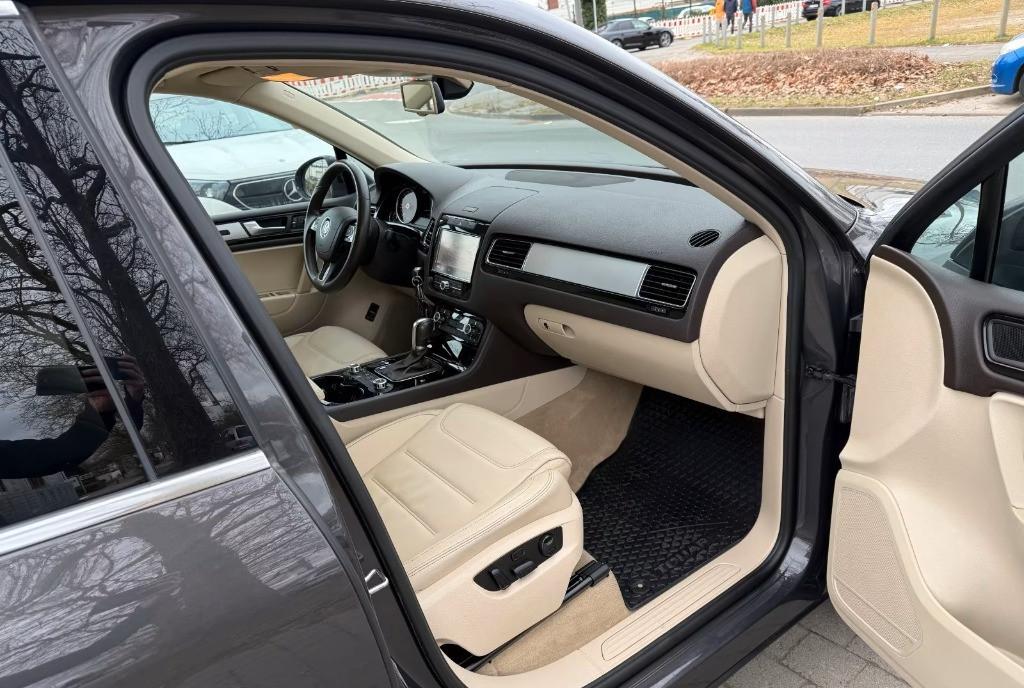 Volkswagen Touareg din 2011 V6 3 0 TDI 240 CP motor CASA 7P5 fara accidente in istoric carte service completa scaune din piele incalzite cu reglaj electric si memorie navigatie climatizare automata pe 2 zone suspensie reglabila pe inaltime volan incalzit ABS ESP inmatriculata ITP valabil in stare perfecta de functionare km reali Euro 5 7 250 euro negociabil