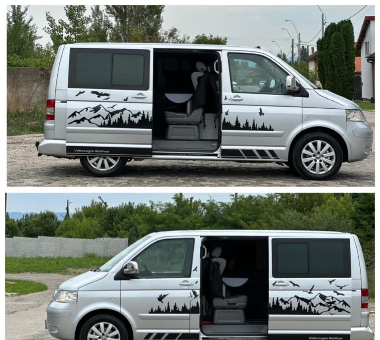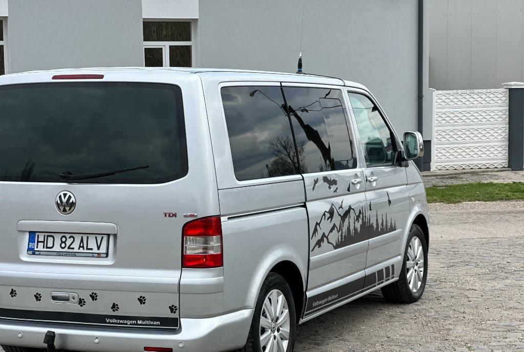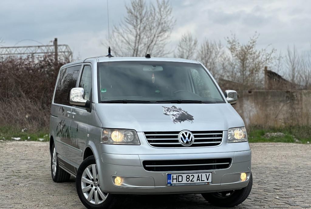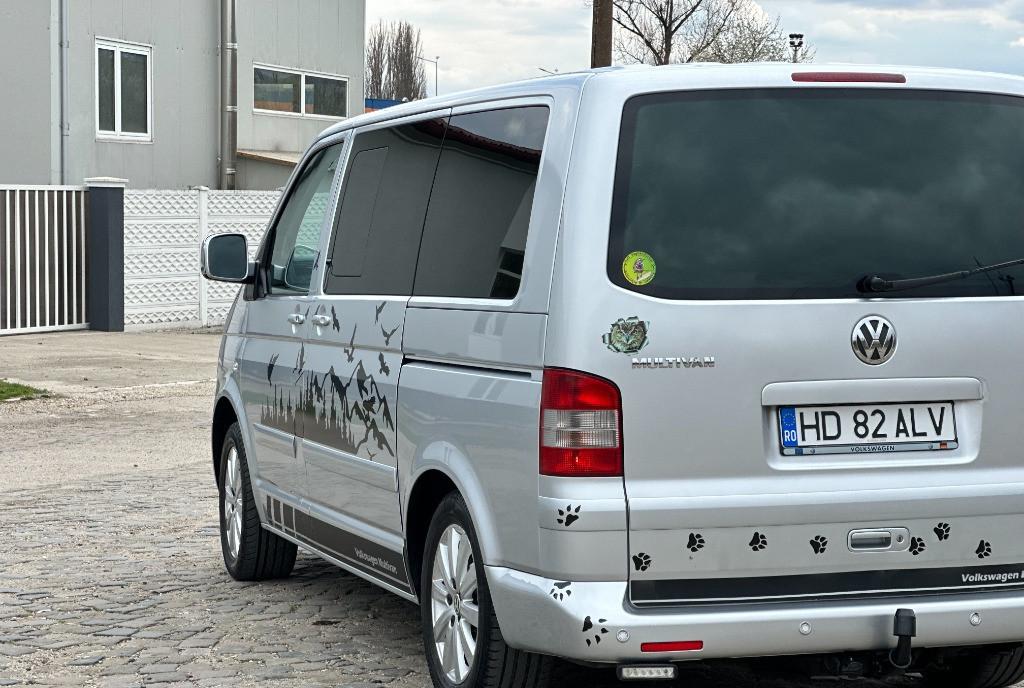Volkswagen Transporter T5 multivan higline comfortline 2 5 diesel unic proprietar pe brif 128 kw - 174 cp navigatie mare color cu ecran tactil import Germania af 2004/luna 08 auto de nefumator geamuri reglabile electrice km 274 400 perdelute geamuri pasageri 7 locuri 2 usi laterale culisante cu soft clouse