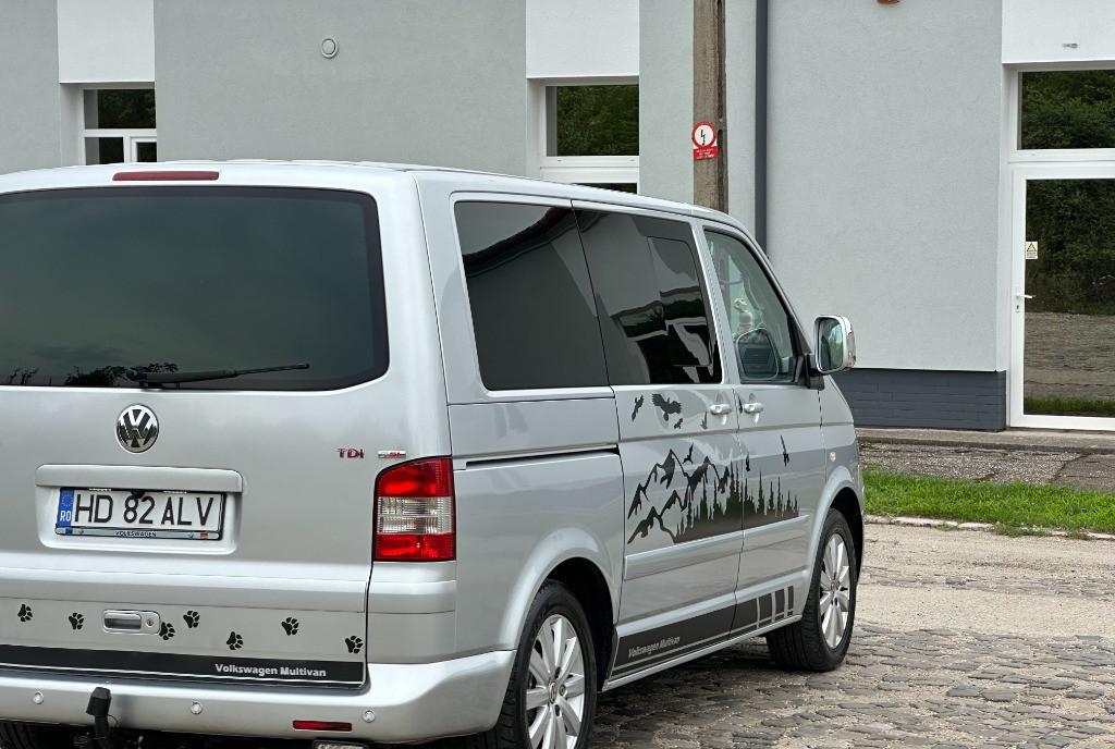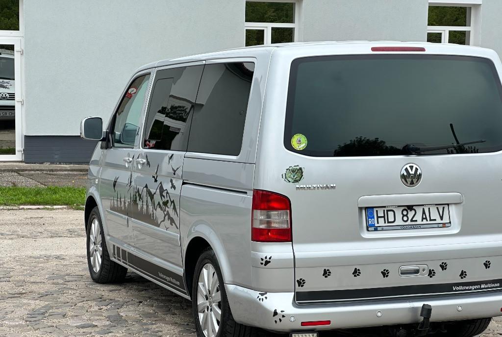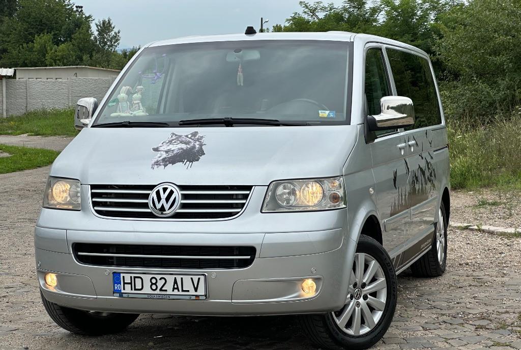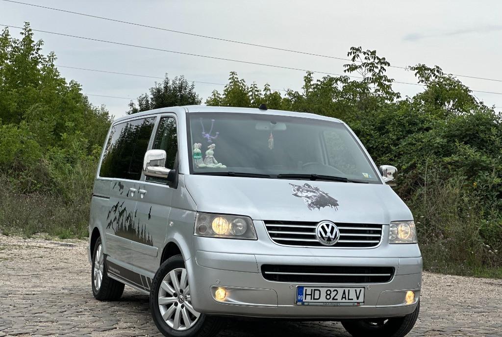 Volkswagen Transporter T5 multivan/higline/comfortline 2 5 diesel unic proprietar pe brif 128 kw - 174 cp navigatie mare color cu ecran tactil import Germania af 2004/luna 08 auto de nefumator geamuri reglabile electrice km 274 400 perdelute geamuri pasageri 7 locuri 2 usi laterale culisante cu soft clouse